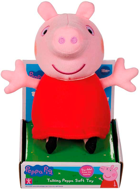 Talande Greta Gris Ge ditt barn timmar av skoj med denna talande Greta Grisi den klassiska röda klänningen. När du trycker henne på magen, säger hon kända Greta Gris-fraser som barnen kommer att älska. Med en höjd på 20 cm är Peppa lätt att ta med på språng perfekt för lekdejter, bilresan eller som mysig sängkamrat. Den mjuka, kramvänliga kvaliteten och den igenkännliga designen gör den till en säker vinnare hos alla Peppa-fans.
