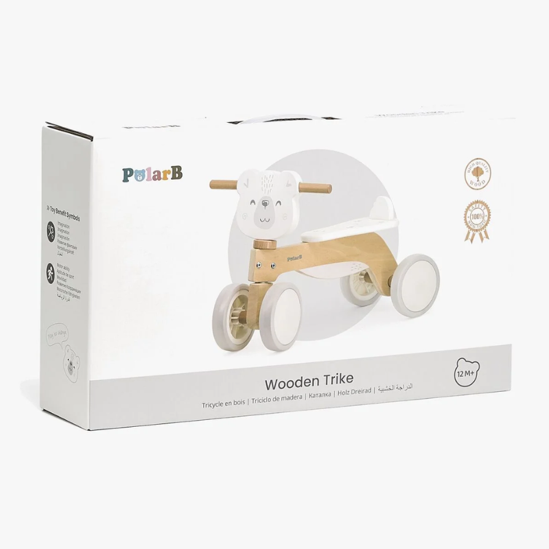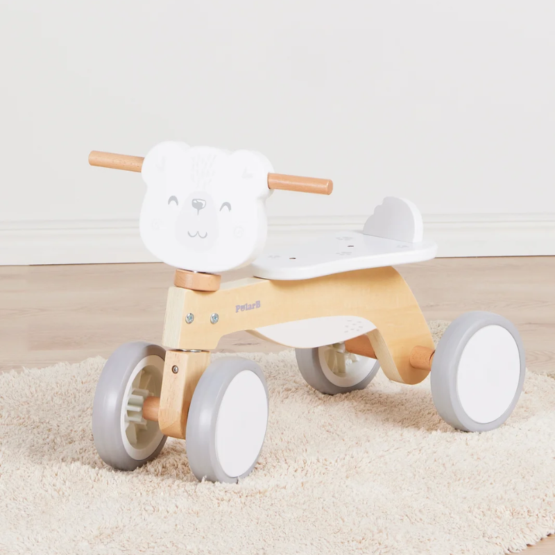 PolarB trä gåbil med stabila hjul – sött björndesign