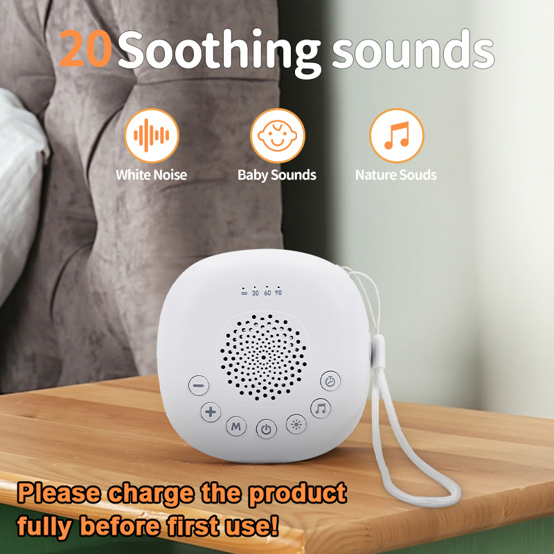 Den här portabla white noise sleep maskinen är utformad för att skapa lugn och bättre sömn för både barn och vuxna. Med 20 olika lugnande ljud kan du enkelt hitta det ljud som hjälper dig eller ditt barn att somna.