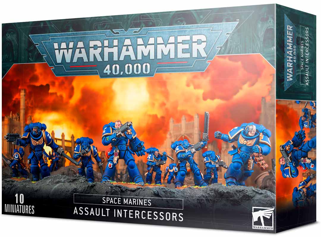 Space marines Assault Intercessors Space marines figurpaket som stärker din armé. * Paketet innehåller 10 Space marines figurer Alla figurer ska monteras och målas. Vi rekommenderar warhammer färg och lim.